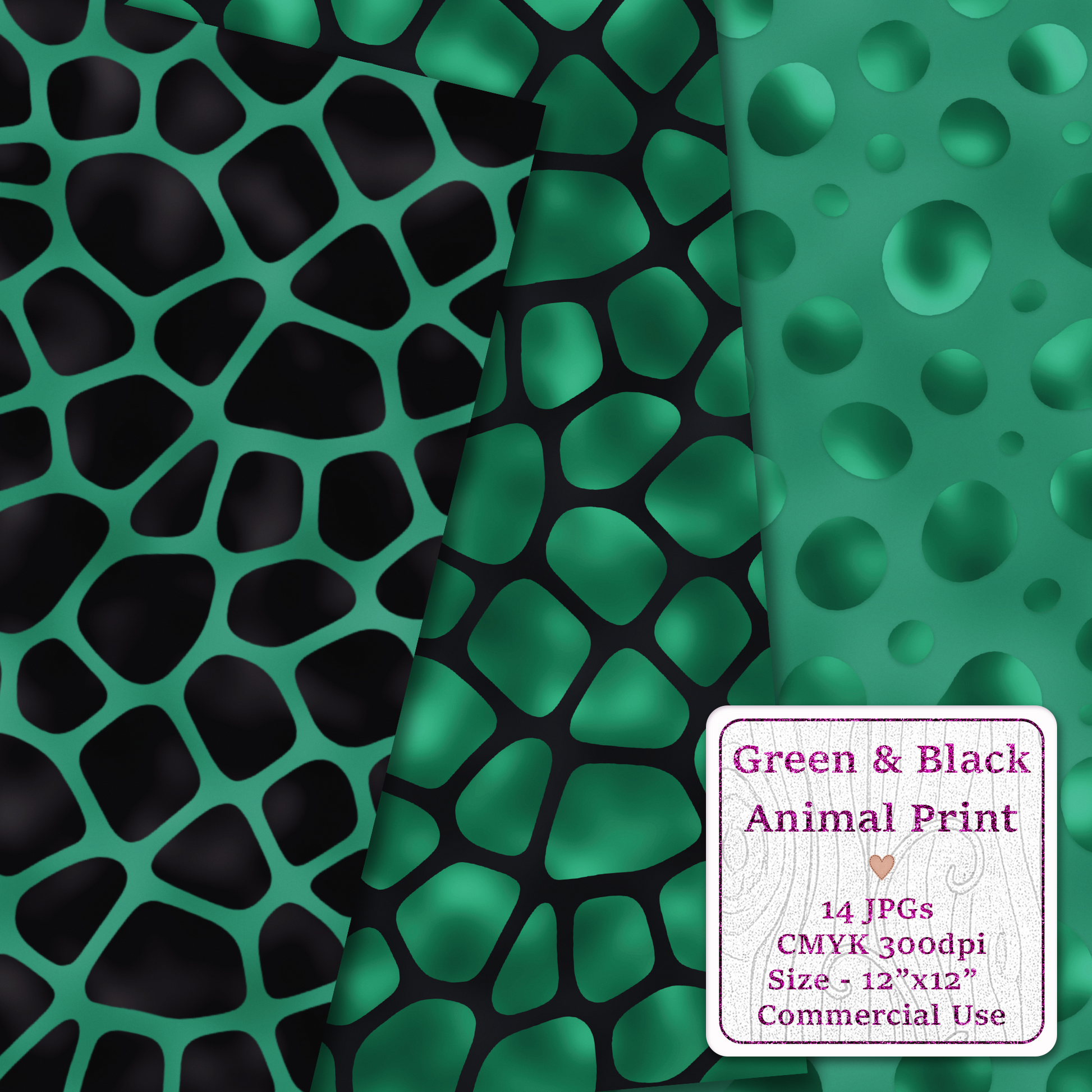 Bring bold sophistication to your designs with this Green & Black Animal Print Seamless Digital Pattern Pack.