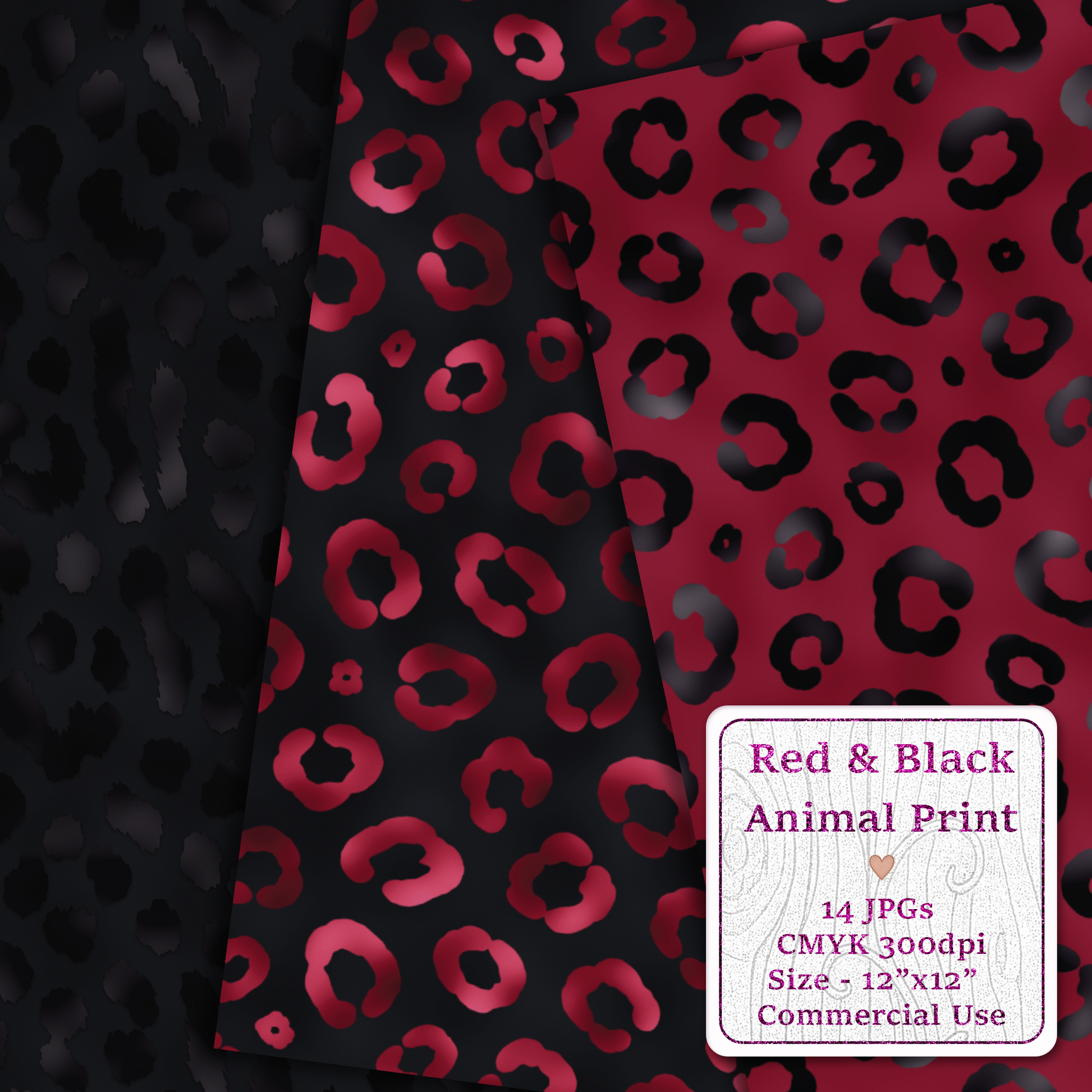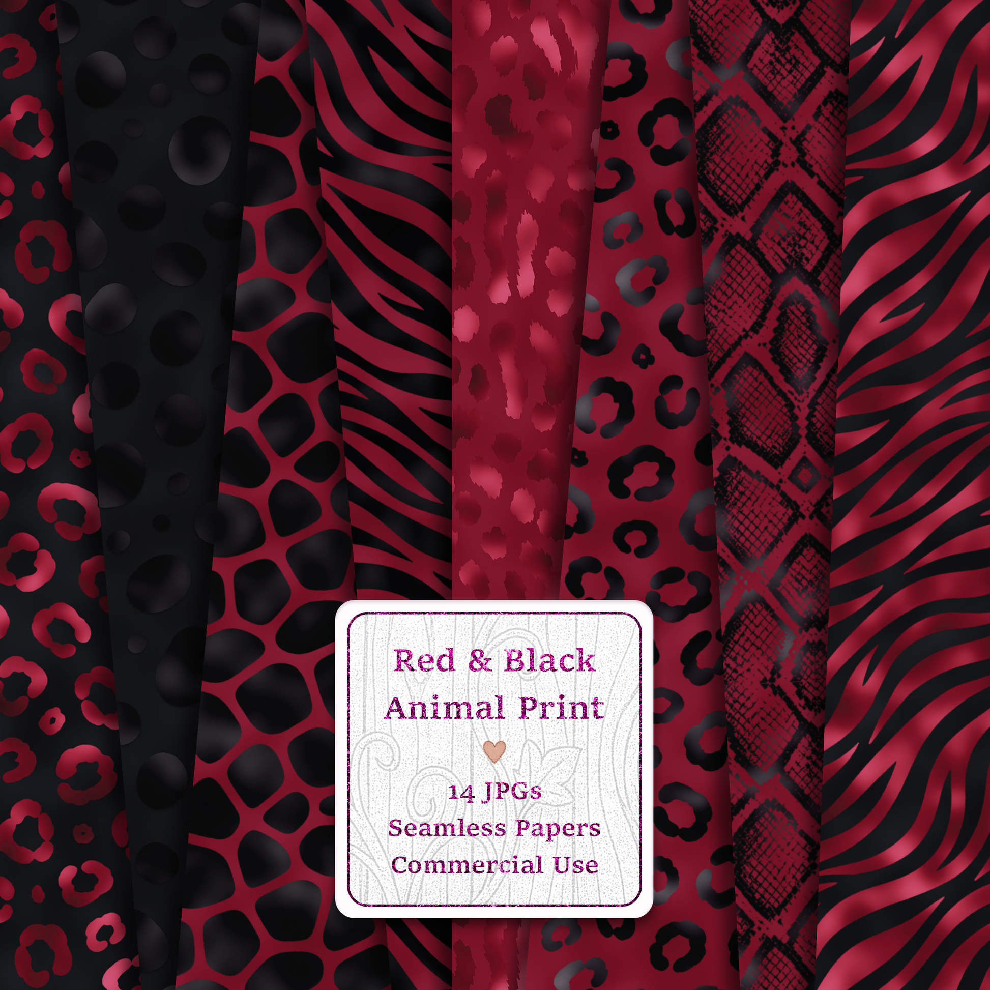 Add bold sophistication and timeless edge to your designs with this Red & Black Animal Print Seamless Digital Paper Pack.